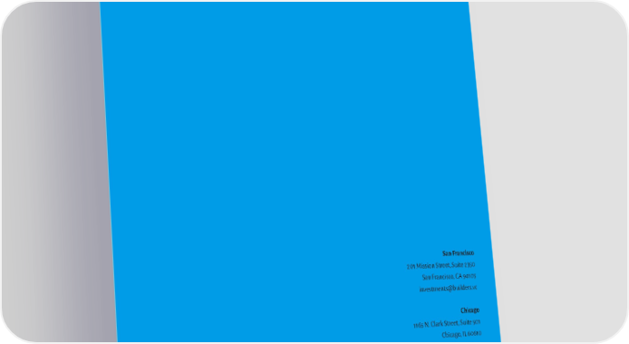 San Francisco 201 Mission Street, Suite 2350 San Francisco, CA 94105 [email protected] Chicago 1165 N. Clark Street, Suite 501 Chicago, IL 60610 [email protected] www.builders.vc